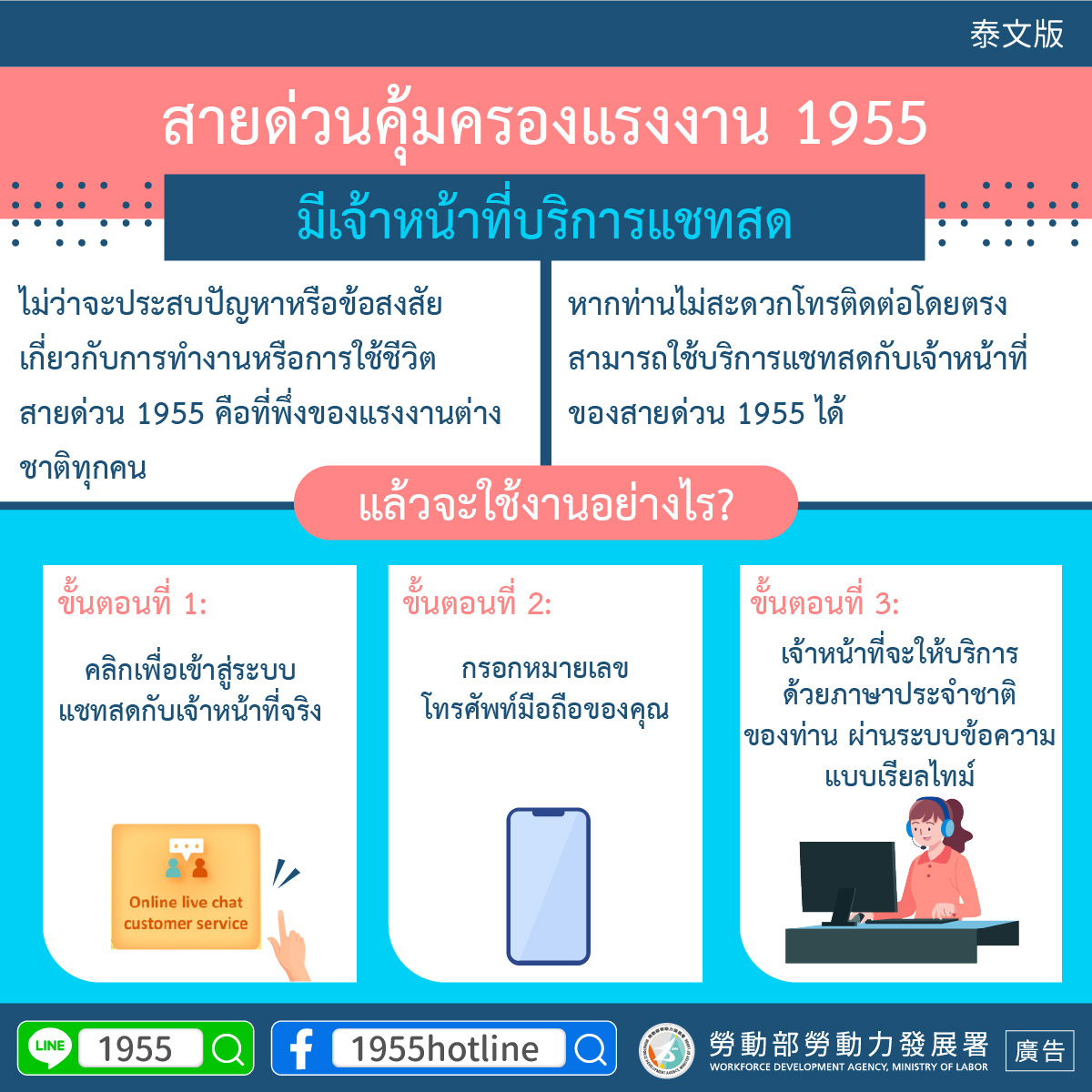 ▍สายด่วนคุ้มครองแรงงาน 1955 มีเจ้าหน้าที่บริการแชทสด
