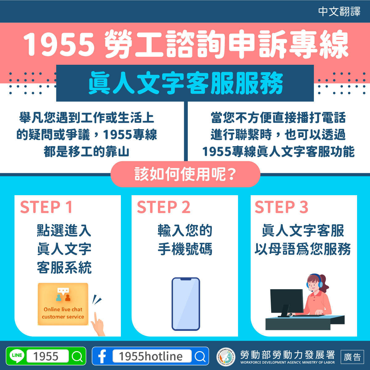 ▍1955 勞工諮詢申訴專線-真人文字客服服務
