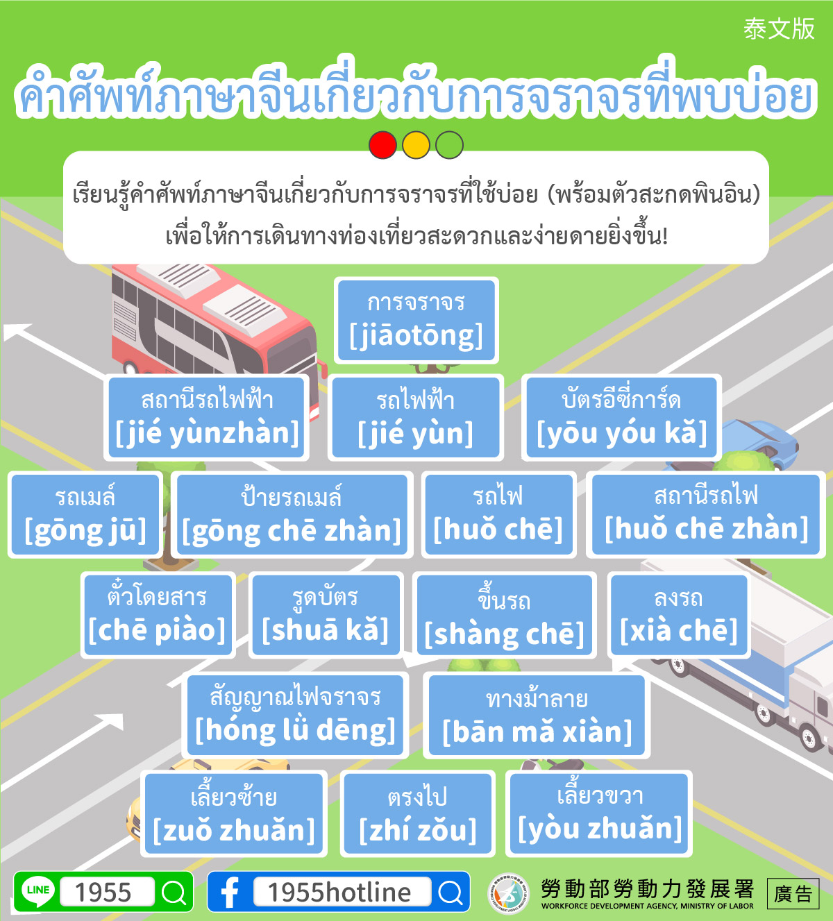 ▍คำศัพท์ภาษาจีนเกี่ยวกับการจราจรที่พบบ่อย